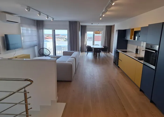 Goście mogą przygotowywać domowe posiłki w wyposażonym aneksie kuchennym. Lotnisko Zadar znajduje się 60 km od położonego przy plaży apartamentu.